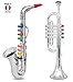 Click n' Play Set of 2 Musical Wind Instruments for Kids - Metallic Silver Saxophone and Trumpet Horn