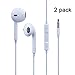 Amoner Premium Earphones with Stereo Mic & Remote Control for iPhone 6S/iPhone 6, iPhone 6 Plus,iPhone 5s 5c 5, iPad / iPod and More - White (Pack of 2)