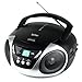 Jensen CD-555 White/Silver CD Bluetooth Boombox Portable Bluetooth Music System with CD Player +CD-R/RW & FM Radio with Aux-in & Headphone Jack Line-In