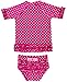 RuffleButts Baby/Toddler Girls Rash Guard 2-Piece Swimsuit Set - Berry Polka Dot Bikini with UPF 50+ Sun Protection - 12-18m
