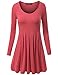 Doublju Long Raglan Sleeve Scoop Neck Flare Tunic Dress Top for Women with Plus Size Coral X-Large