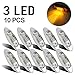 Partsam 10pcs Universal Clear Lens Amber Side Marker Clearance Light 3LED Sealed Light