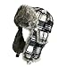FUR WINTER Wool Blend Buffalo Check Faux Fur Aviator Outdoor Trapper Trooper Pilot Ski Hat BLK/GRY L/XL