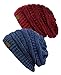 NYfashion101 Exclusive Unisex Two Tone Warm Cable Knit Thick Slouch Beanie Cap, 2 Pack - 2 Tone Burgundy & Blue/Denim