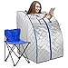 Infrared FAR IR Negative Ion Portable Indoor Personal Spa Sauna by Durherm with Air Ionizer, Heating Foot Pad and Chair, 30 Minutes Timer, Large, Silver