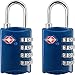 TSA Luggage Locks (2 Pack) - 4 Digit Combination Steel Padlocks - Approved Travel Lock for Suitcases & Baggage - Blue