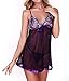 Ruzishun Sexy Lingerie Lace Splicing Transparent Chemise (Purple, L)