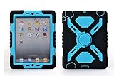 Pepkoo Ipad 2/3/4 Case Plastic Kid Proof Extreme Duty Dual Protective Back Cover with Kickstand and Sticker for Ipad 4/3/2 - Rainproof Sandproof Dust-proof Shockproof (Black/blue)