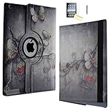 iPad Air 2 Case - JYtrend (TM) 360 Degrees Rotating Stand Leather Magnetic Smart Cover Case With Wake Sleep Feature For iPad Air 2/iPad 6 With Bonus Screen Protector, Stylus and Cleaning Cloth, Butterfly Flower