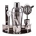 CucinaPrime 13 Piece Stainless Steel Professional Bar Set (2 Cocktail Shakers, Jigger, Speed Opener, Waiters Corkscrew, Strainer, Long Bar Spoon and 6 Black Bottle Pourers)
