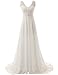 JAEDEN Elegant V-neck A-line Lace Chiffon Long Beach Wedding Dress | B01CE0IK3M |