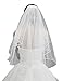 Gogh 2T 2 Tier Silver Lined Beaded Edge Fingertip Length Bridal Wedding Veil 09 (Light Ivory)