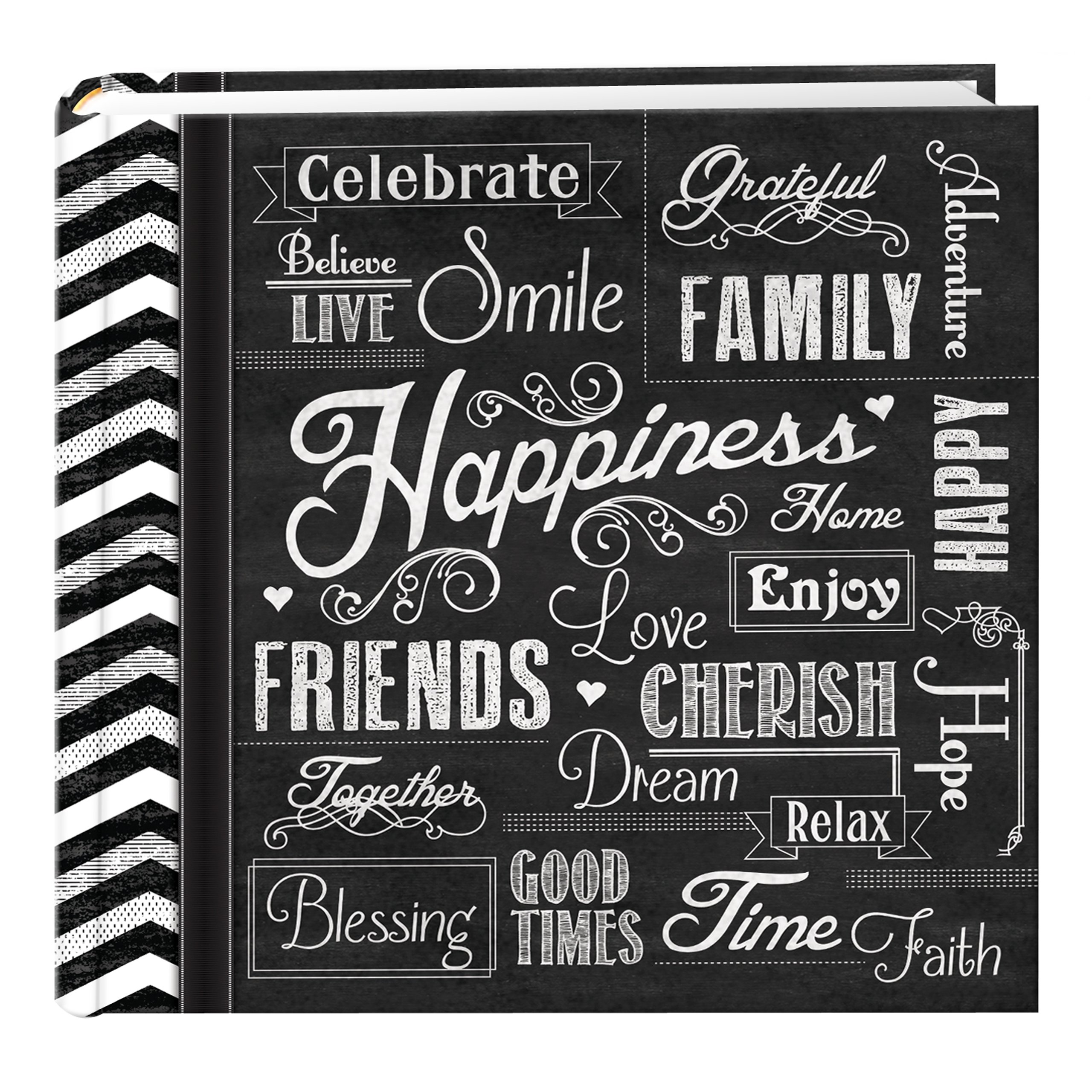 Pioneer Photo Albums EV-246CHLK/H 200-Pocket Chalkboard Printed Happiness Theme Photo Album for 4 by 6-Inch Prints