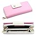 Chunshop Women PU Leather Purse Clutch Cute Long Zip Button Wallet Card Holder (Pink-1)