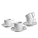 HIC 9-Piece Stackable Espresso Coffee Set, Fine White Porcelain, 4 (4-Ounce) Cups with Matching Saucers and Metal Stand, Gift Boxed