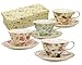 Gracie China Rose Chintz 8-Ounce Porcelain Tea Cup and Saucer, Assorted colors, Set of 4