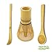 BambooMN Matcha Whisk Set - Golden Chasen (Tea Whisk) + Chashaku (Hooked Bamboo Scoop) + Tea Spoon - 1 Set - Premium Matcha Set to Prepare a Traditional Cup of Matcha