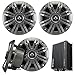 Marine Speaker With Amp Combo Of 4x Kicker 41KM652C 6.5" 2-way 195 Watt, 2 Ohm Marine Speakers + Enrock EKMB500ABT 400W 4-Chan Bluetooth Car/Marine Amplifier