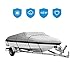 MSC Heavy Duty 600D Marine Grade Polyester Canvas Trailerable Waterproof Boat Cover, Grey,Fits V-Hull,Runabout Boat Cover,Full Size Boat Cover, Mooring and Storage Used Boat Cover