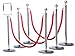New Star Foodservice 54743 Tulip Top Stainless Steel Stanchions, Set of 2 Posts with 1 of 79.5-Inch Red Velvet Rope