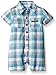 Calvin Klein Baby Boys' Woven Plaid Poplin Romper, Blue, 18 Months
