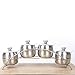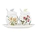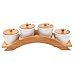 4 White Ceramic Condiment Spice Jars w/ Serving Spoons, Bamboo Lids & 4 Tier Bamboo Bridge Holder Rack