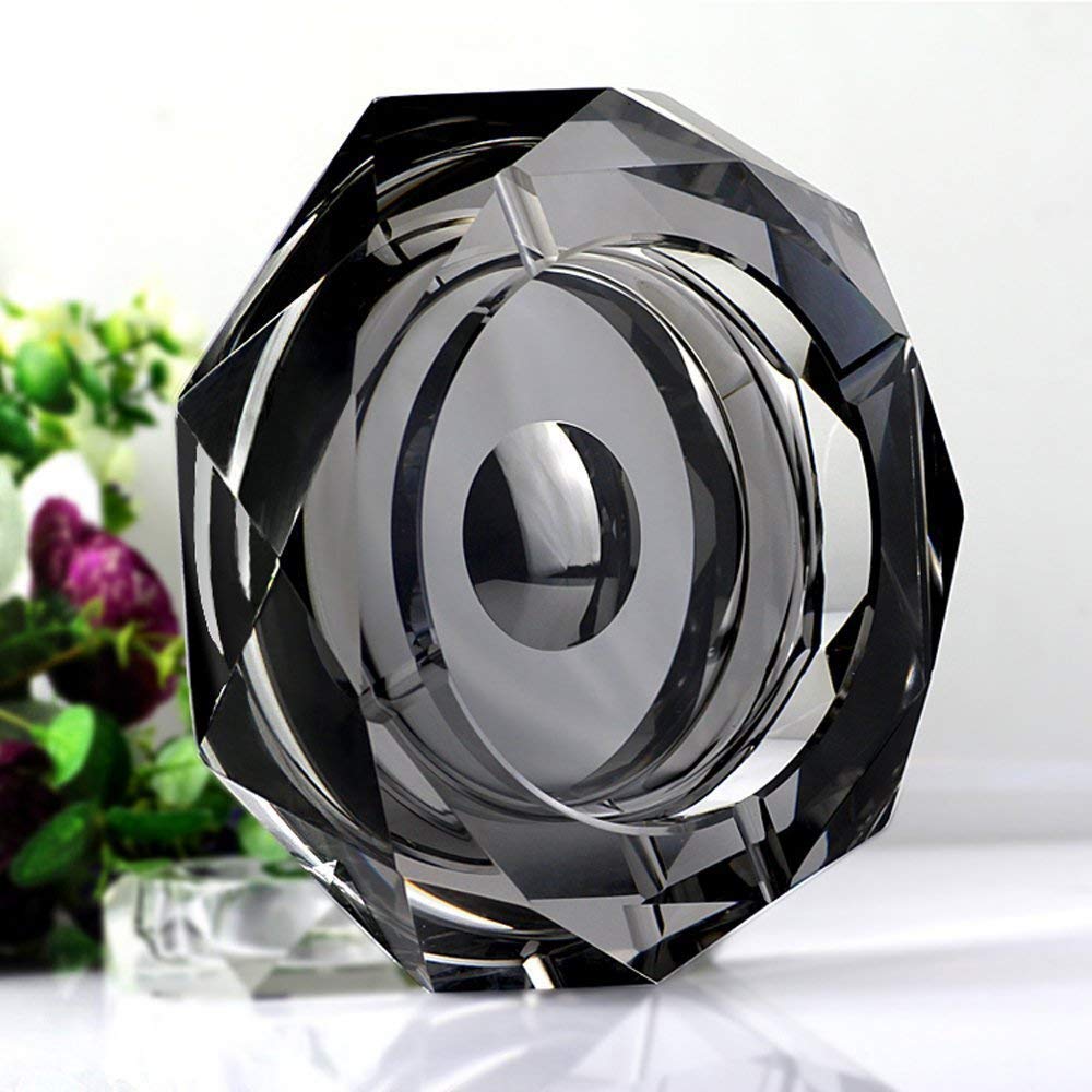 Amlong Crystal Octagon Black Large Crystal Ashtray 6 Inch X 6 Inch (150mm X 150mm) for Cigarettes or Cigars with Gift Box