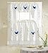 B&H Home Blue Butterfly Embroidered 3-Piece Kitchen Curtain Window Treatment Set