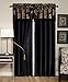 Chezmoi Collection Royale 4-Piece Jacquard Floral Window Curtain/Drape Set Sheer Backing Tassels Valance, Black/Gold