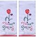 "Happy Spring" Kitchen Dish Towels 2 Pack with Embroidered Words and Flowers