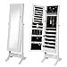 Belleze 57"-INCH Mirrored Jewelry Cabinet Armoire with Stand Mirror Rings, Necklaces, Bracelets (White)