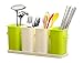 Honla Interlocking Plastic Flatware Caddy Organizer on Tray-Silverware,Cutlery,Utensil Drying Rack Holder for Kitchen Countertop/Dining Table Storage,4-Compartment Drainer,Lime Green and Cream
