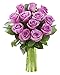 KaBloom Bouquet of 12 Fresh Purple Roses (Farm-Fresh, Long-Stem)