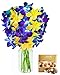 KaBloom Exotic Blue Sapphire Dendrobium and Yellow Mokara Orchids: 5 Blue Dendrobium Orchids & 5 Yellow Mokara Orchids from Thailand with Vase and One Box of Lindt Chocolates