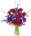 KaBloom Symphony Roses and Orchids Bouquet of 12 Red Roses, 5 Blue Dendrobium Orchids and Lush Greens without Vase