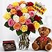 ProFlowers 12 Count Multi-Colored One Dozen Vibrant Birthday Roses w/Free Clear Vase - Flowers