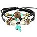 Elimoons Classic Adjustable Leather Cord Woven Wrap Bracelet with Turquoise Cross Pendant