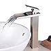BeeleeFashion Brushed Nickel Waterfall Bathroom Basin Sink Faucet Bathroom Vessel Faucet Single Handle Hot and Cold Water Mixer Tap