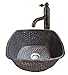 ELECWISH Bathroom Artistic Glass Vessel Sink Counter Top with Oil Rubbed Bronze Faucet and Pop-Up Drain Combo, Round