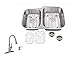 MSLX4060P7636, 32"x20"x9" 40/60 Offset 16 Gauge Double Bowl Stainless Steel Kitchen Sink and Faucet