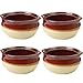 Porcelain Ceramic Onion Soup Crock Bowl, Small 10 Ounce, Set of 4, Brown and Beige