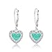 Kids Earrings - 925 Sterling Silver with a White Gold Tone Mint Green Enamel Heart with Surrounding Crystals Leverback Earrings MADE WITH SWAROVSKI ELEMENTS Kids, Children, Girls, Baby