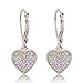 925 Sterling Silver with a White Gold Tone Mixed Colored Crystal Heart Leverback Children's Earrings