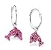 .925 Sterling Silver Crystal Dolphin Hoop Earrings for Girls Hypoallergenic Nickel Free - GIFT BOXED