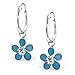 .925 Sterling Silver Blue Daisy Flower Hoop Earrings for Girls - Hypoallergenic - Nickel Free GIFT BOXED