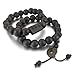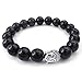 KONOV Black Agate Mens Womens Bracelet, Energy Bead, Buddha Mala, Black Silver