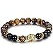 INBLUE Women,Men's 10mm 12mm Alloy Energy Bracelet Link Wrist Energy Stone Brown Silver Tone Buddha Mala Bead
