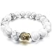 INBLUE Women,Men's 10mm 12mm Alloy Energy Bracelet Link Wrist Energy Stone Gold Tone White Simulated Howlite Turquoise Buddha Mala Bead Elastic