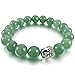 INBLUE Men,Women's 10mm 12mm Alloy Energy Bracelet Link Wrist Energy Stone Simulated Aventurine Green Silver Tone Buddha Mala Bead