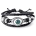 KONOV Mens Womens Leather Bracelet, Blue Evil Eye Adjustable Bangle, Black Silver